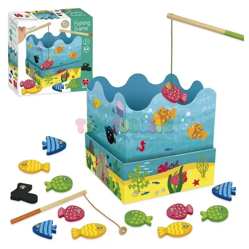 Este divertido juego de acción contiene 2 cañas y 12 peces de madera de colores magnéticos que los niños